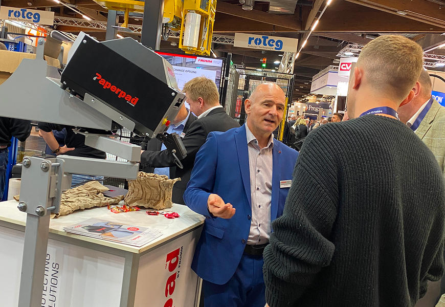 Darüber hinaus präsentierten wir unsere neue Luftpolstermaschine AP1000, die durch ihre Vielseitigkeit nahezu alle Materialien verarbeiten kann. Auch der Schwenkarm mit der Paperpad-Maschine PC1000 überzeugte die Fachbesucher durch seine vielseitige Einsetzbarkeit und ergonomische Handhabung.